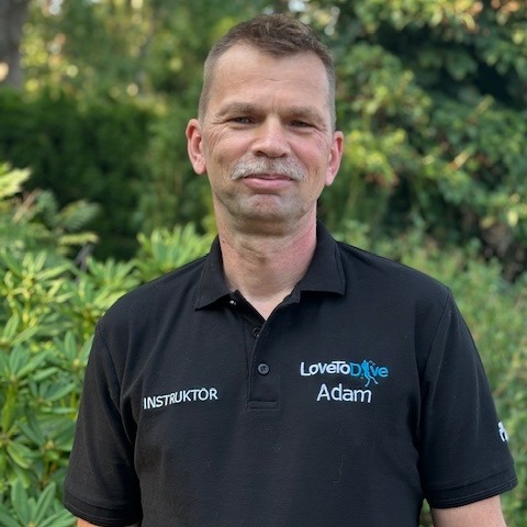 Adam Jankowiak odkrył nurkowanie i od razu wiedział, że zostaje na dłużej. Dziś jako instruktor uczy innych, jak bezpiecznie podziwiać piękno podwodnego świata i czerpać z tego radość. Szczególną wagę przykłada do dopracowanej pływalności, a obecnie rozwija się także w konfiguracji sidemount. Poza wodą nie rezygnuje z innych pasji – wspinaczki czy skitouringu.